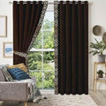 Buy elegant velvet curtains with laser cut borders online in Pakistan. These fancy blackout curtains feature a luxurious chocolate velvet base with intricate golden laser-cut detailing. Ideal for living rooms, bedrooms, and guest spaces, offering style, privacy, and elegance in one.