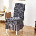 Elevate your dining or accent chairs with Zebra Grace, a stylish blue zebra-print chair cover featuring a ruffled skirt and stretchable fit. This washable slipcover offers full protection while adding a bold, fashionable touch to your living or dining space.
